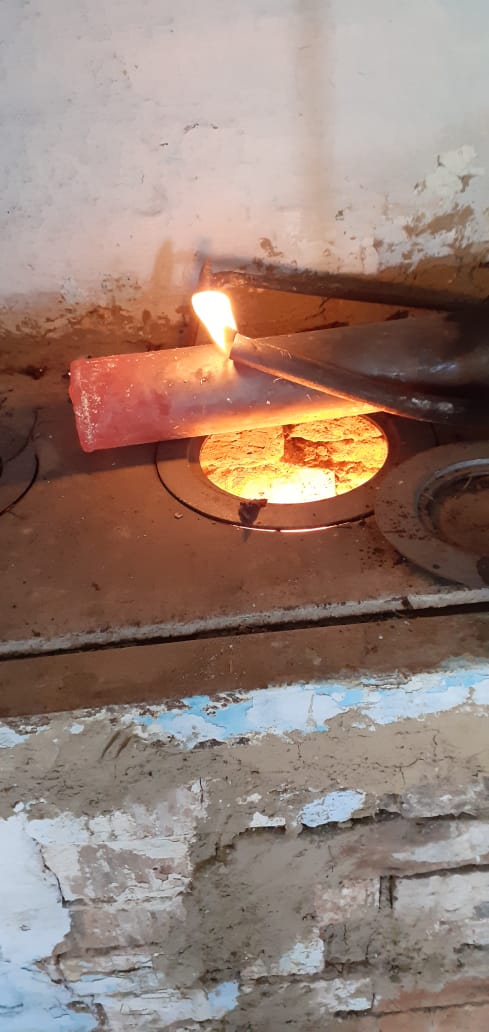 А я тебе про что? Горелкой разогреваем, раскаляем смесь и дальше она должна гореть без воздуха, для этого закрываем колобок в кастрюле.