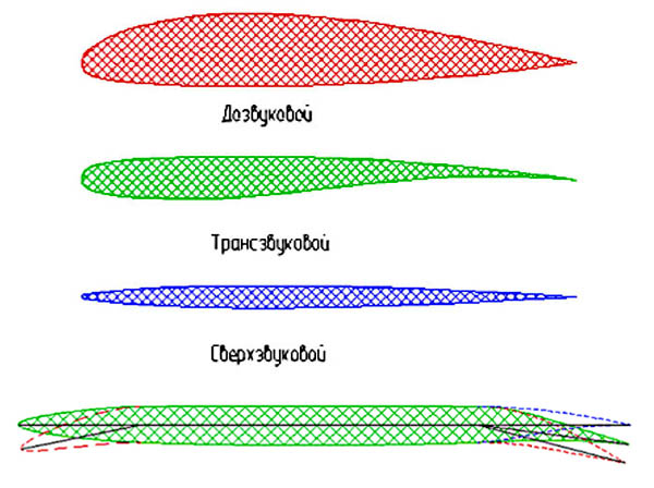 Чем больше скорость тем больше должно быть смещение крыла на зад. К этому привела практика. Когда обычные моторные самолёты стали делать реактивныи, то при достижении больших скоростей они начали клевать носом. Именно по этой причине крылья на реактивных самолетах стали делать стреловидными.