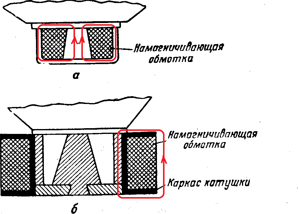 Так нет здесь магнитной цепи, это же типа чашечного трансформатора, где обмотка по внешней стороне чашки. По сути дроссель с сердечником из кобальта. Рис. 35 б. Хрен поймешь как тут индукцию посчитать?