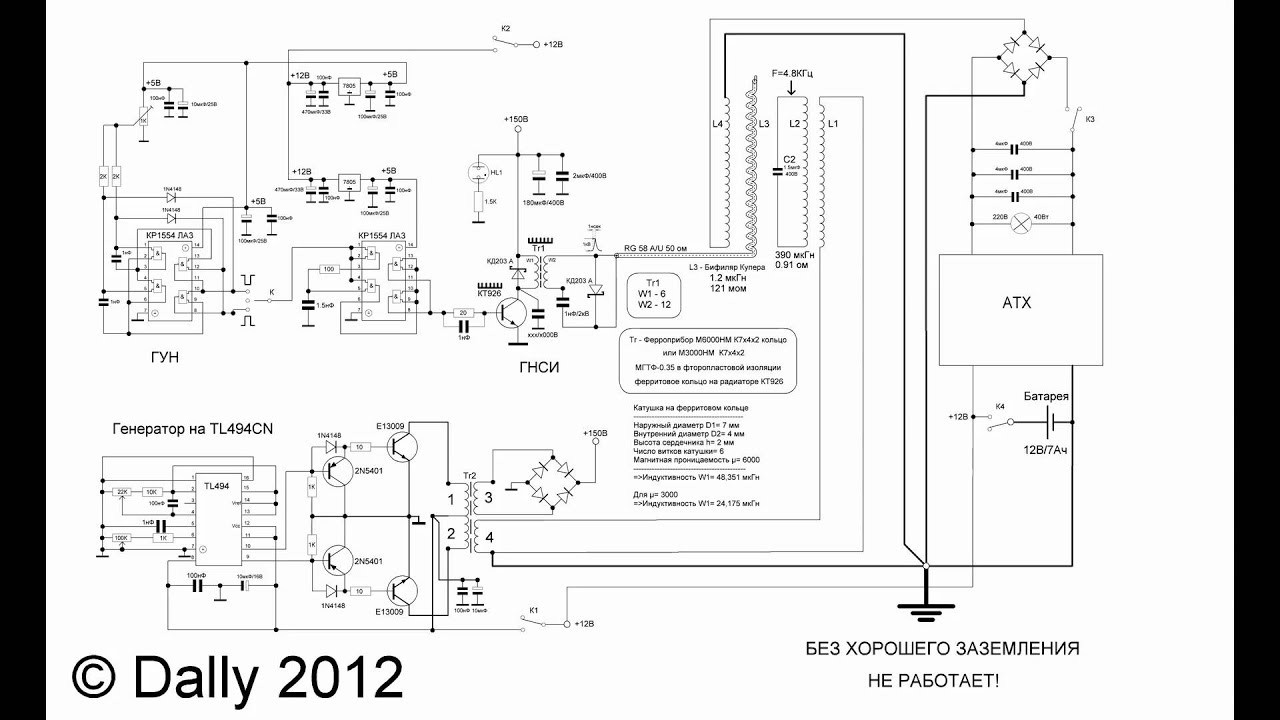 Там не дросселя в питании ключа и разрядника на выходе бифиляра. Я взял первую попавшуюся схему чтоб было понятно о чем идет речь.