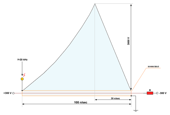 Если уж совсем точно, то должен быть источник напряжения, в нашем случае генератор однополярных импульсов с максимально низким внутренним сопротивлением.