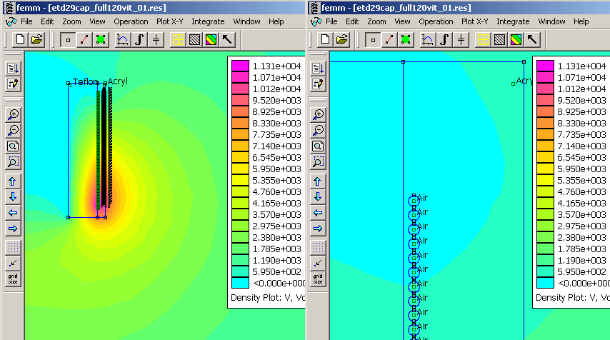 Попробовал посчитать в программе FEMM (электрическое поле в пространстве) затраты энергии для получения потенциала 12кВ (120 вит и 100 в/вит.).
