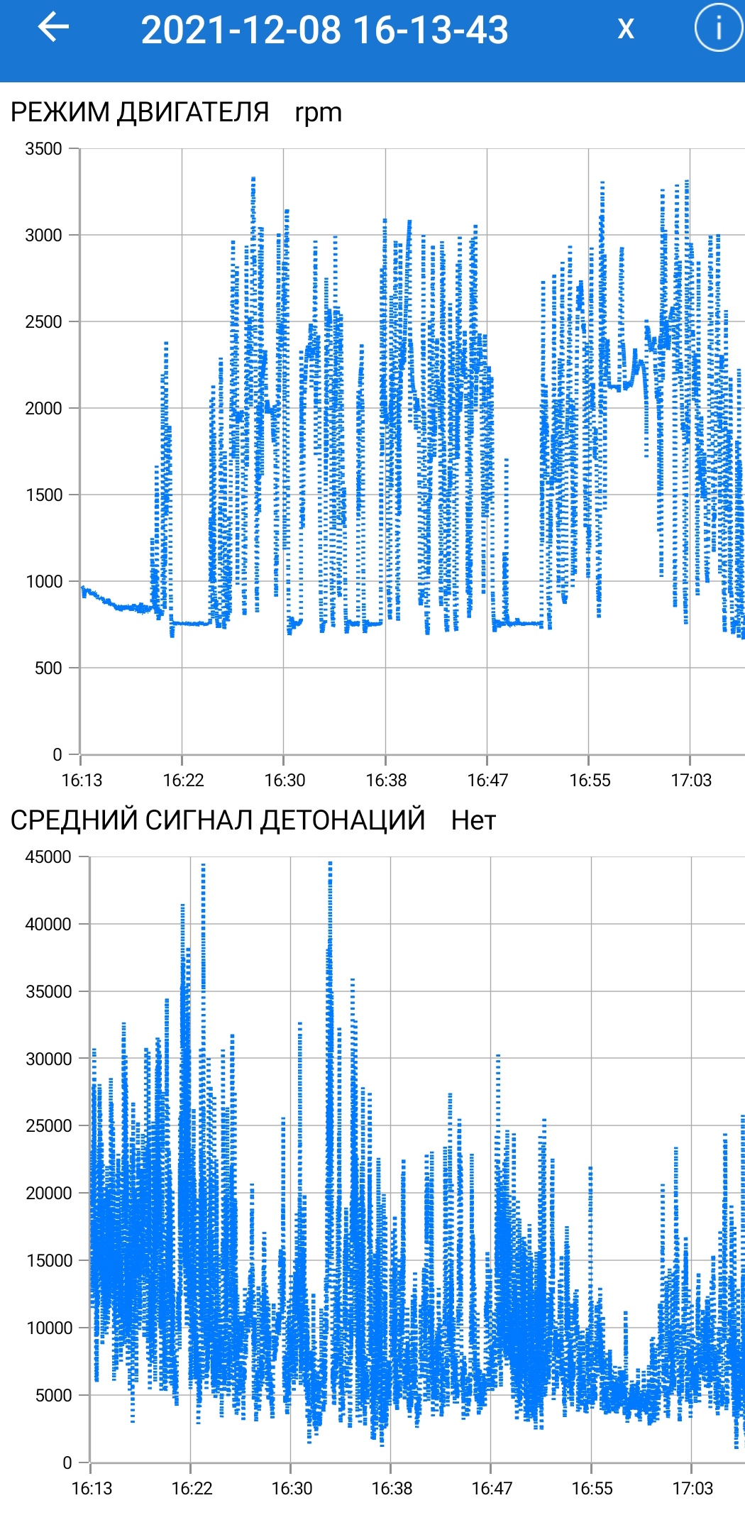 На графике наибольшие значения по датчику детонации при оборотах ниже 1000 об/мин.