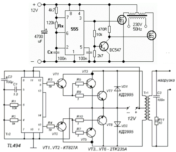 Эти схемы работать не будут,разве,что как источник высокого напряжения.Для бифа такое не подходит.