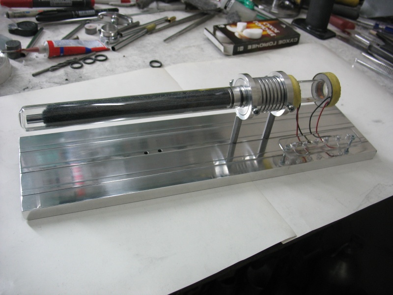 Длина корпуса-резонатора определяет длину волны в резонаторе. Диаметр корпуса определяется исходя из необходимой мощности устройства. Мощность растёт с увеличением диаметра устройства пропорционально площади поперечного сечения корпуса, так как пропорционально площади поперечного сечения растёт мощность теплообменного аппарата. Резонатор представляет собой обычную трубу, желательно с гладкими стенками. В акустической волне происходят сжатия и расширения газа, при этом происходят колебания температуры газа из-за попеременного адиабатического нагрева и охлаждения. При движении волны в резонаторе, происходит взаимодействие волны со стенкой резонатора, и температура стенки начинает влиять на колебания температуры газа в акустической волне. Для наиболее эффективного теплообмена и улучшения качества стоячей волны и была введена тепловая трубка. Вот простейший пример на рисунке. Может ты прочтёшь основы термоакустики?