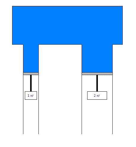 Есть сосуд с водой, есть две трубы с разницей диаметра в два раза.