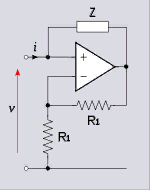 здесь Z - обычный резистор с сопротивлением Z, впаянный между входом и выходом ОУ, никакое не отрицательное. Вместо резистора можно установить емкость или индуктивность, получишь соответственно двухполюсники с отрицательными емкостями индуктивностями.