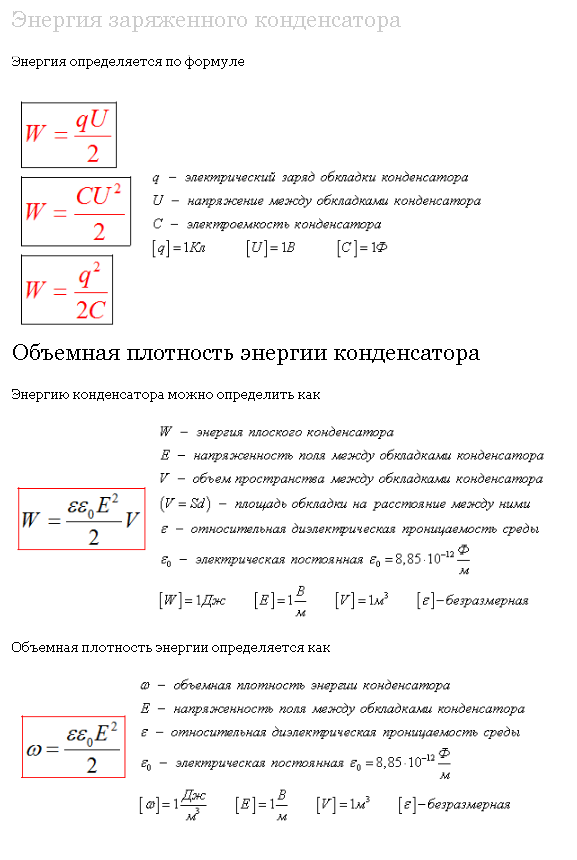 Зачем ты мне формулы с ошибками пишешь? Ты же с двоешником разговор ведёшь, значит должен быть умнее. Зачем врёшь? Не знаешь как энергия конденсатора считается - просто спроси. Это не сложно. [ссылка]