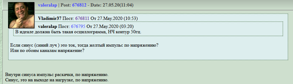Теперь осталось понять , почему просадка напряжения на нагрузке при импульсе раскачки. Осцилок тока Валера не показал.