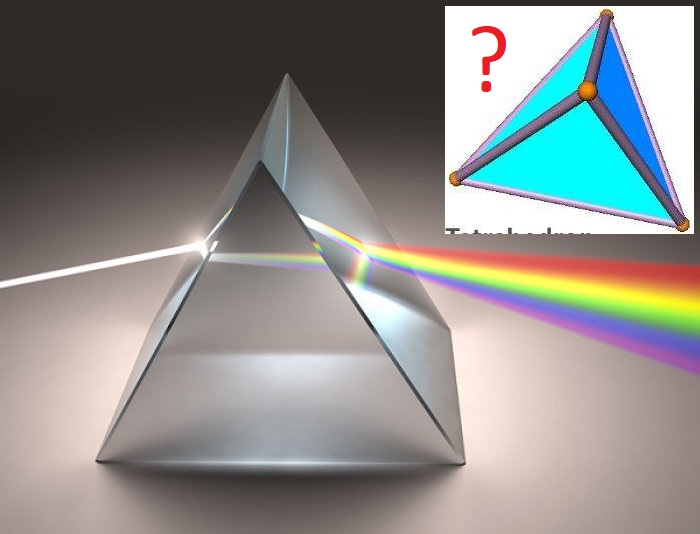 А в чём разница, две смежные стенки тетраэдра это те же две смежные стенки призмы, разве что угол между ними не 60 градусов и всего то... Свет так же будет преломляться и разлагаться....
