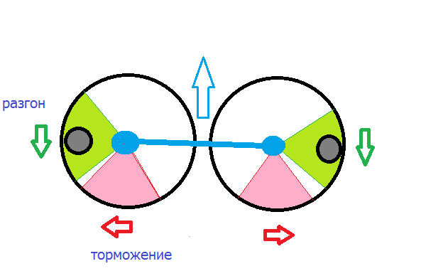Так посчитай такую простую игрушку- Два колеса с грузиками вращаются в разные стороны. Но с участком ускорения и торможения.
