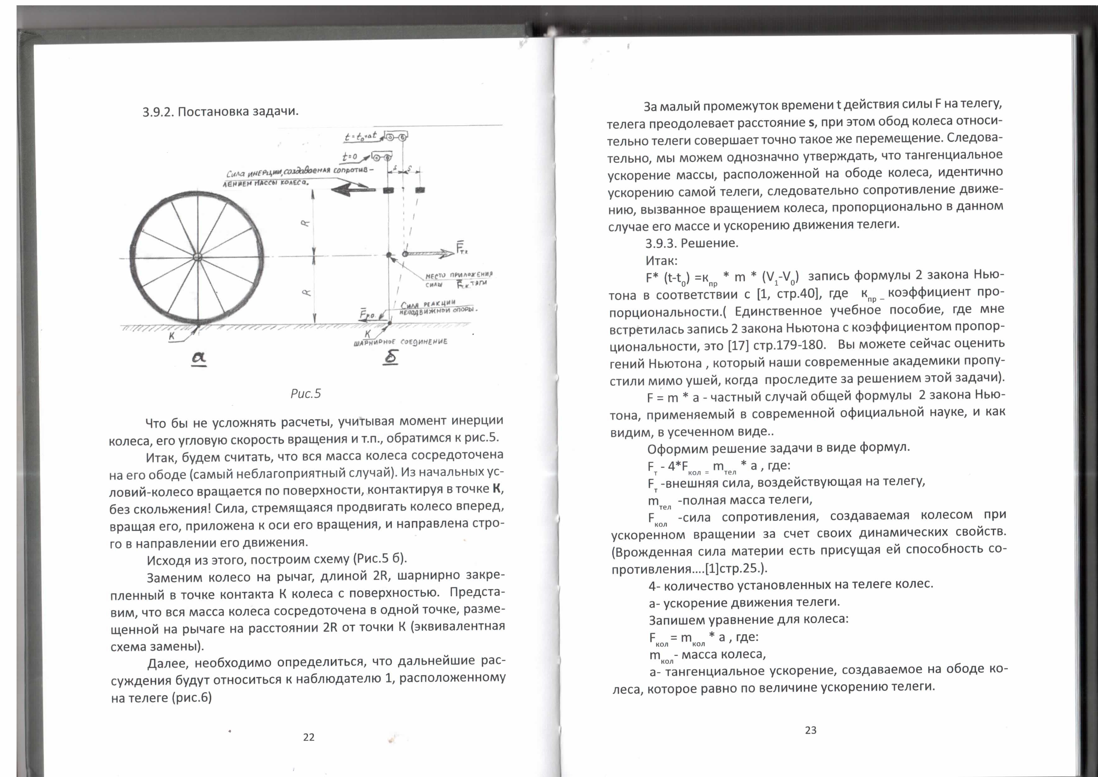 Феме- так обрати внимание, что колесо не по инерции двигается, а к нему приложена ВНЕШНЯЯ СИЛА . Может я малость в тексте на указал, но на рис.3, 5 вектора сил указаны!