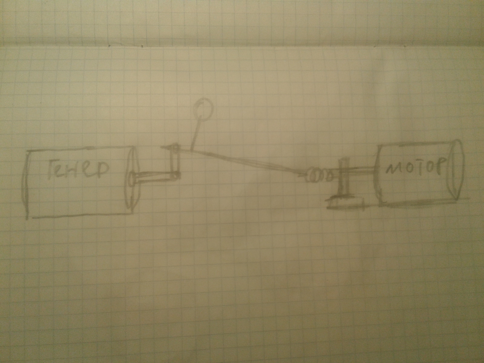 Сам двигатель может находиться в стороне от установки, и передавать на неё вращенин через карданный вал. Вместо кардана можно использовать пружину. Сейчас скину примерную схему.