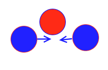 Возми три одинаковых шарика и попробуй прощелать такое. Только учти что два шарика должнв двигаться друг другу на встречу по инерции а не придавливатося силой мышц.