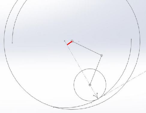 При наезде на заклиненный рычаг ролик тоже немного меняет радиус вращения,но при этом ЦСС не меняет своего прямого угла по отношению к вектору скорости. Ведь направление вектора скорости, является следствием действия ЦСС. ЦСС всегда направлена к центру той дуги по которой тело движется в данное мгновение, а не той по которой тело двигалось раньше или будет двигаться потом.