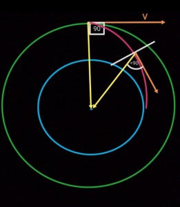 При этом момент импульса изменяется пропорционально приложенному действию и углу между вектором силы действия и вектором исходной скорости, но ты вектора складывать не умеешь.