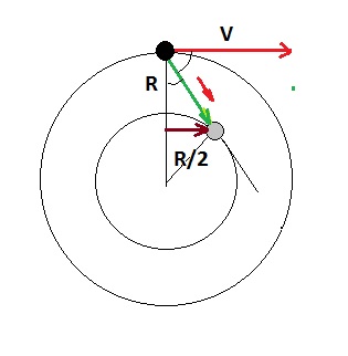 Итак, если радиус уменьшается в два раза, а период вращения уменьшается, чтобы сохранить линейную скорость постоянной, то частота вращения увеличится.