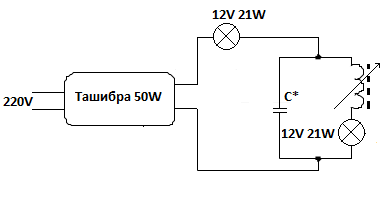 Так вот при определённом положении стержня лампа по питанию еле светила гдето на четверть, а лампа внутри контура гдето на 2/3... Приборов тогда не было всё чисто визуально... Казалось бы вот оно. Лампы должны светить одинаково.