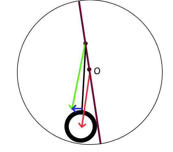 :Точка крепления оси груза находится дпльше оси вращения. При вращений центробежная сила(красная) будет груз не прижимать к стенке а наоборот отдирать от стенки своей составляющей(синей), далее груз просто напросто вывернется и его ось подвески окажется на линий диаметра круга с противоположной стороны. Никаких подкручиваний вращения и в помине нет и не будет.