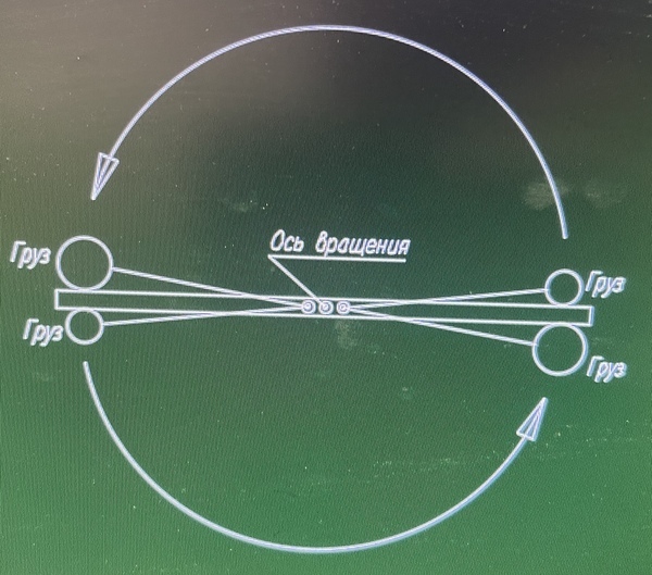 ... На рисунке я допустил намеренно ошибку разместив оси грузов не на той стороне вала балки, как ни странно но для создания момента вращения необходимо оси перенести за вал вращения балки.
