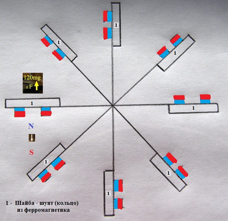 Мне в школе рассказывали про вертикальную составляющую магнитного поля Земли. Но как эта составляющая взаимодействует в данном случае с магнитами мне не понятно. Поэтому и спрашиваю.. Хочу увеличить изменения в весе. Сделать их более ощутимыми. Очень интересный двигатель получаеться