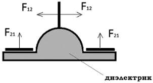 Благодаря тому что силы, действующие на поверхность электрически заряженного диэлектрика, всегда перпендикулярныы поверхности, силы F21, действующие на пластину – основание, сонаправлены и суммируются.