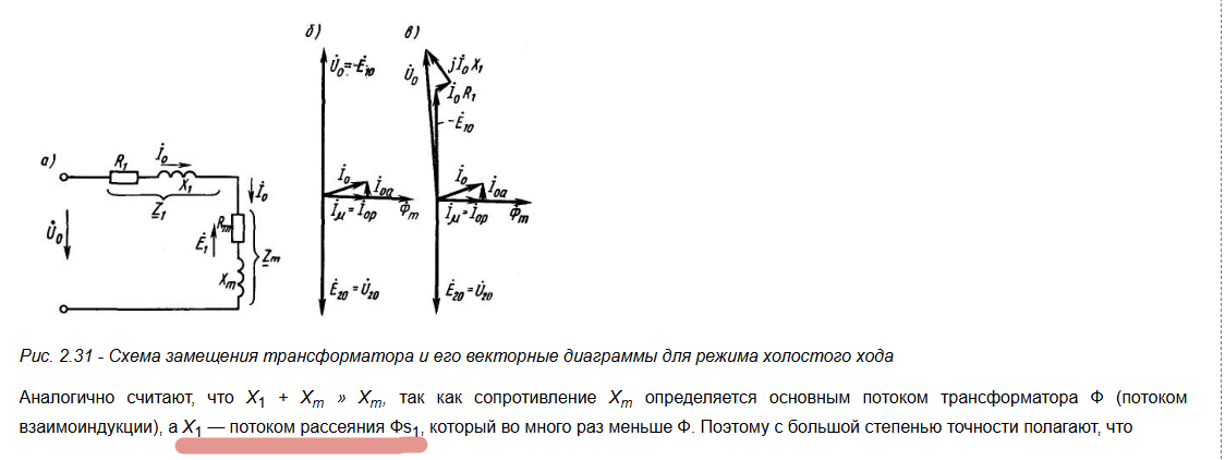 Так вот, X1 на схеме замещения это элемент (реактивное сопротивление) обусловленный потоками рассеяния.