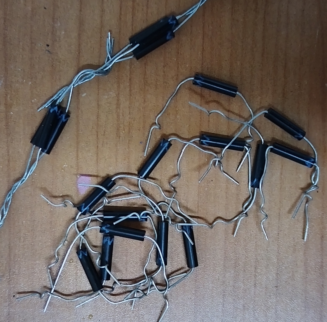 Современные лампы накаливания наполнены инертным газом, который светится при прохождении через него разряда. По снимкам вижу, что у тебя есть высоковольтные диоды и конденсатор К15-4 470 пф 30 кВ, можешь сделать высоковольтную вилку Авраменко, и по экспериментировать с ней. У меня были высоковольтные диоды КЦ106В на 8 кВ, и конденсатор К15-4 4700 пф 12 кВ, я собрал вилку Авраменко, включив для гарантии в каждом плече по два диода последовательно. Подключил на горячий выход ТВСа тонкий провод, через две комнаты там подключил вилку Авраменко, параллельно конденсатору разрядник. После включения на разряднике стали громко щёлкать разряды, и чем меньше разрядный промежуток, тем чаще щёлкали разряды, но я переусердствовал с размером разрядного промежутка, напряжение на конденсаторе превысило его рабочее напряжение, и с громким хлопком порвало 100 граммовый конденсатор, как Тузик грелку! Я бывал когда то в Институте Высоких Напряжений, где проходили практикум по ТВН, там в огромном зале, заставленном различным высоковольтным оборудованием нам демонстрировали высоковольтные разряды между шарообразными электродами, потом разряд на изолятор на воздухе, когда разряд шёл по поверхности изолятора, и изюминка на торте, это разряд на изолятор в масляной ванне. Напряжение разряда плавно повышали, пока разряд не разрушил изолятор, так как электрическая прочность масла была заведомо выше электрической прочности фарфорового изолятора, и он был пробит, грохот был приличный. Делал я однопроводную линию с вилкой Авраменко и изолированным проводом, разрезав его, я просто связал его узлом без гальванического контакта, разряды на разряднике конденсатора продолжались, но частота резко уменьшилась, видимо в зависимости от ёмкости завязанного узла, который представлял собой конденсатор в однопроводной сети.