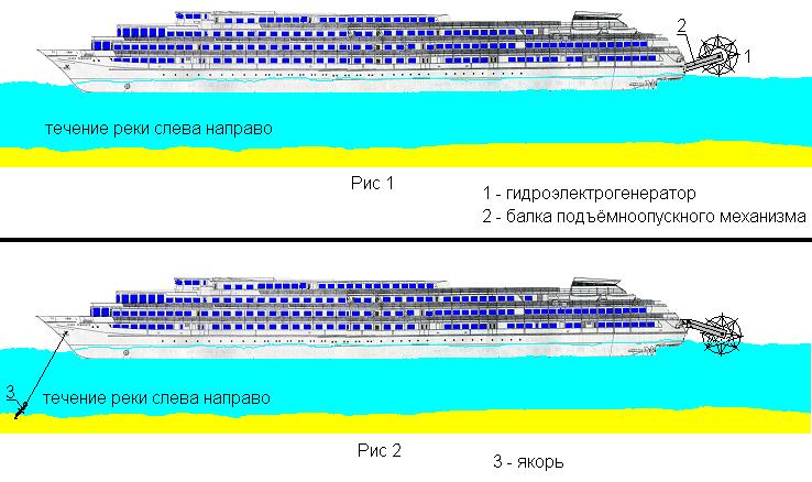 гребные винты, гидроэлектрогенератор, и механизм позволяющий опускать