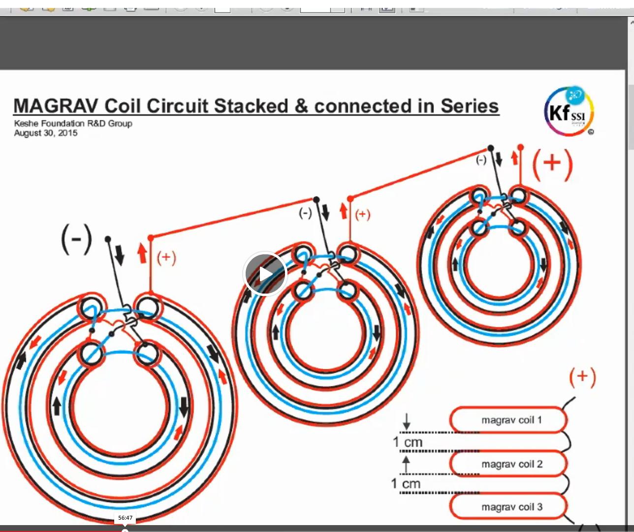 - между катушек -спиралей наносят на бумагу какую-то субстанцию, потом ее "заряжают", разогревают током от сети. На Росси несколько похоже. Может много искровой пробой, мелкие искры в порошке. Катушки могут быть необходимы чтобы этот пробой был в магнитном поле (от него же). Кеше рекомендует сразу большую мощность не снимать - чтобы не прожечь покрытие или порошок не сплавился?